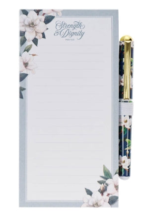 Strength and Dignity Blush Magnolia Magnetic Notepad and Pen Set - Proverbs 31:25