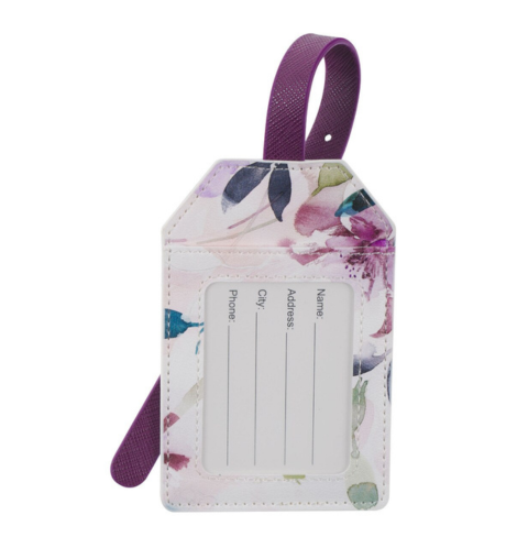 Strength and Dignity Purple Floral Faux Leather Luggage Tag - Proverbs 31:25
