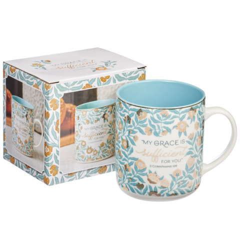 Sufficient Grace Teal Ceramic Coffee Mug – 2 Corinthians 12:9