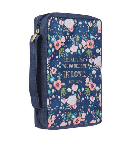 Done in Love Navy Floral Value Bible Case - 1 Corinthians 16:14