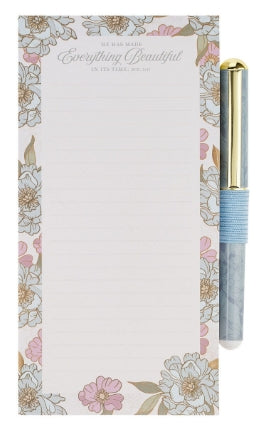 Everything Beautiful Whimsical Blooms Magnetic Notepad and Pen Gift Set - Ecclesiastes 3:11