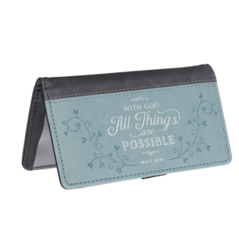All Things Are Possible Two-tone Gray and Blue Faux Leather Checkbook Cover - Matthew 19:26