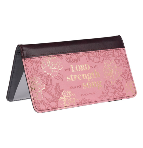 My Strength and My Song Pink Rose Faux Leather Checkbook Cover– Psalm 118:14