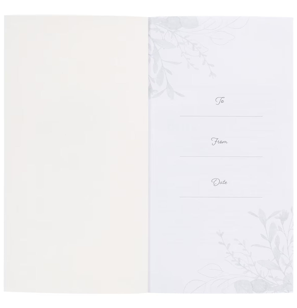 The soft blue flowers and green foliage on the creamy white cover of the gift book create a serene and calming atmosphere, making it an ideal addition to any mom's collection. The flowers frame the title, which is printed in black letters and accented with blue-filed letters.