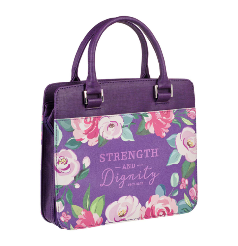Strength and Dignity Purple Floral Purse-style Bible Cover - Proverbs 31:25