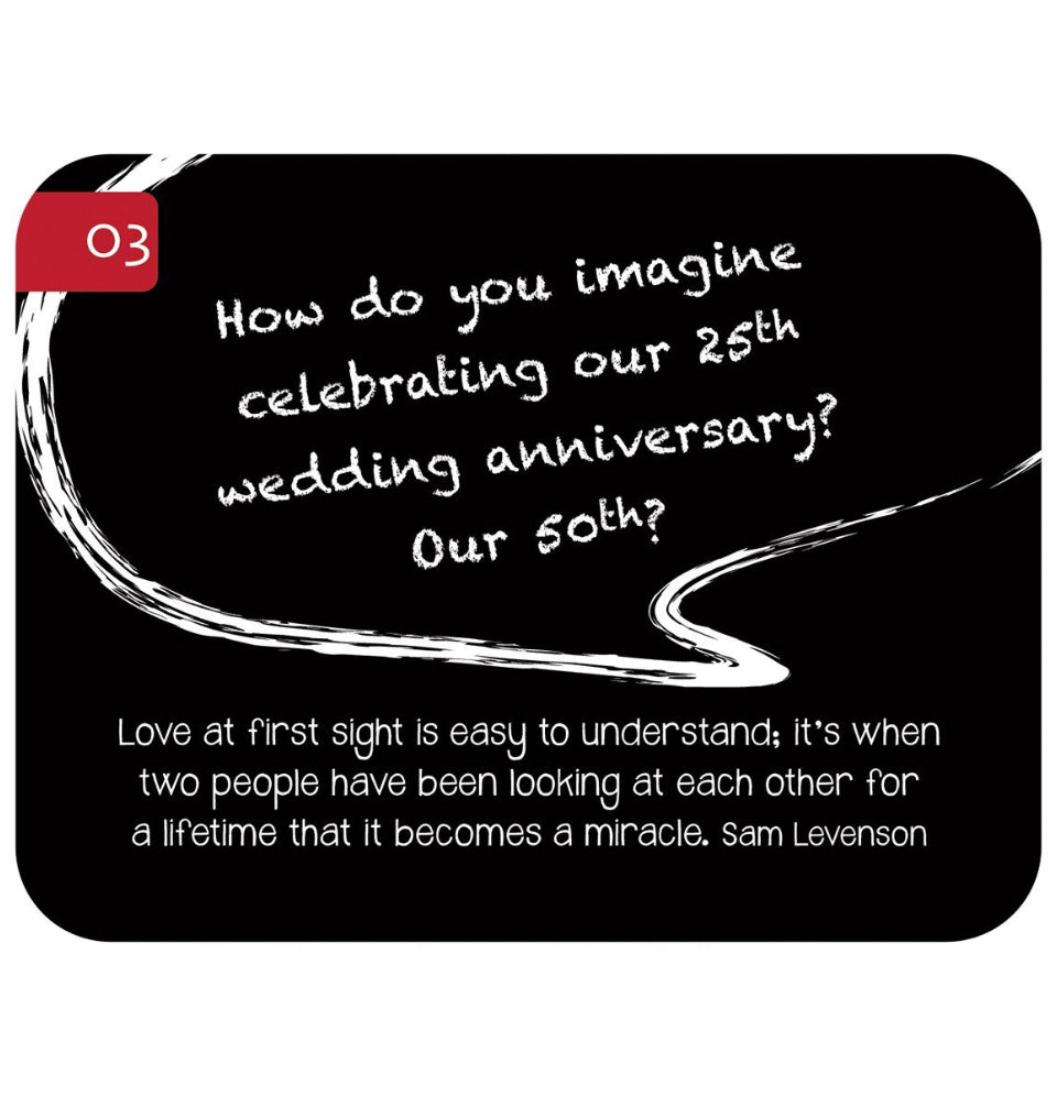 Life is fluid and constantly changing. So are we. Do you still like the same restaurant you liked when you were first married? Do you still follow the same routines? This box of conversation starters will help you discover who your partner is and rediscover who they have become. It's a great way to see how far you have come as a couple and how you have grown.