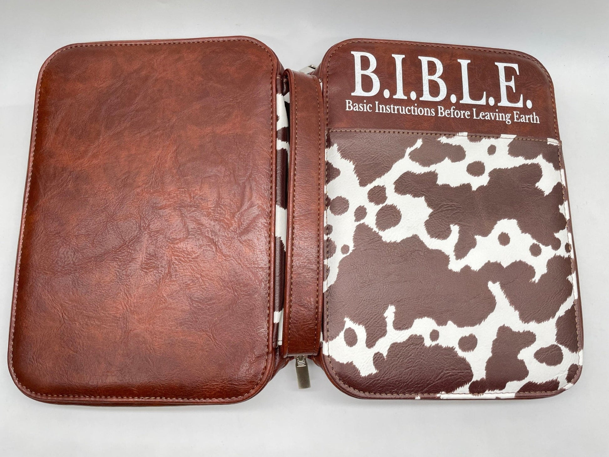 Cow Print Bible Case - Christian Bible Case - Western Bible Cover - Leather Bible Cover - Cow Print Bible Cover - Christian Gift