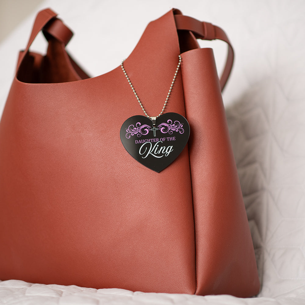 Declare your royal identity with this elegant heart-shaped acrylic ornament, featuring the empowering message “Daughter of the King.” At 3.2 inches wide and hung on a 9.5-inch silver ball chain, it’s a beautiful symbol of worth, purpose, and divine belonging.