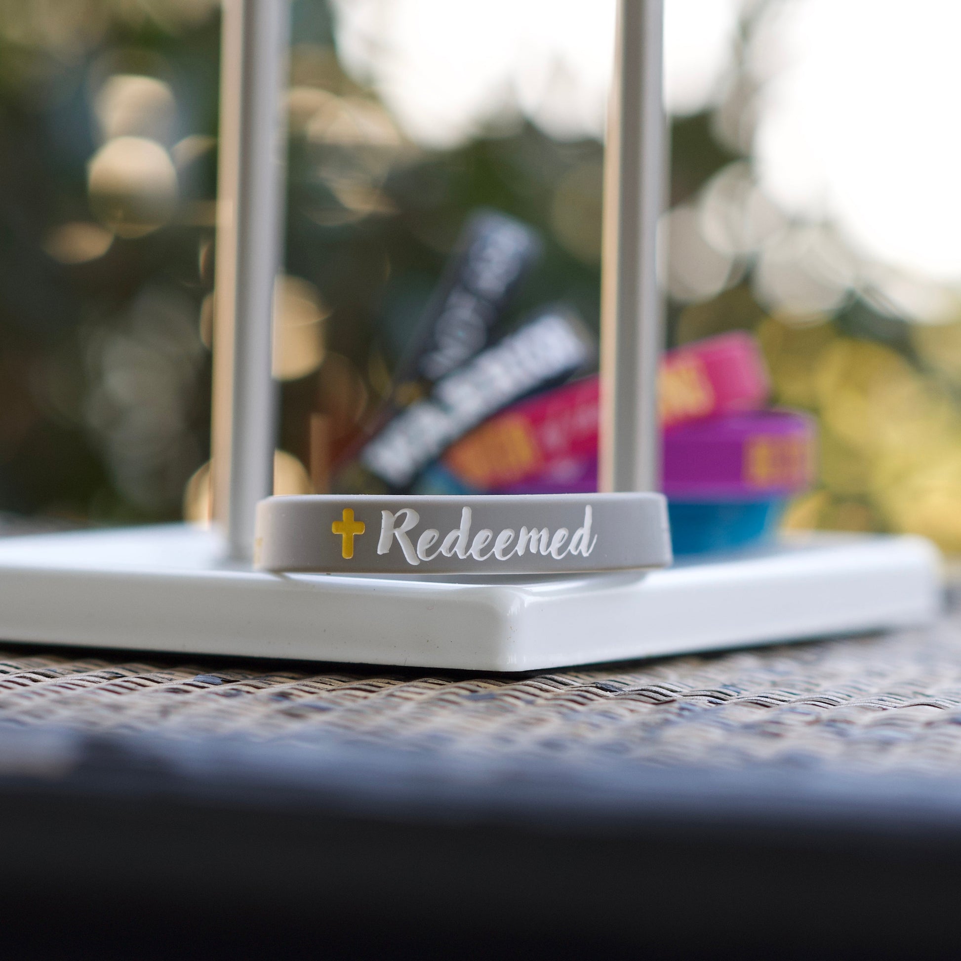 The Redeemed Inspiration Bracelet features the proclamation "Redeemed" and the image of a bold cross, with the corresponding verse of Ephesians 1:7. This verse reassures believers of the forgiveness granted and their restored relationship with God, all made possible by the blood of Jesus.