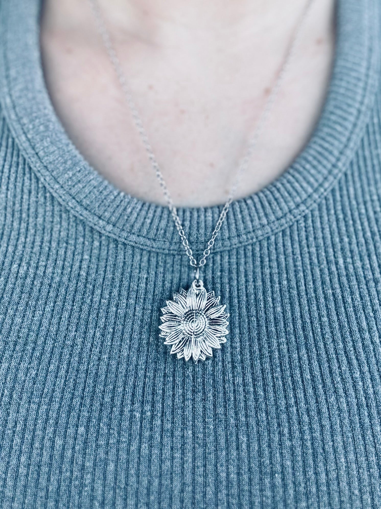 Jesus Loves You Hidden Sunflower Message Necklace - Hidden Message Necklace - Christian Jewelry - Engraved Christian Necklace - Christian Apparel - Necklace - Christian Gift
