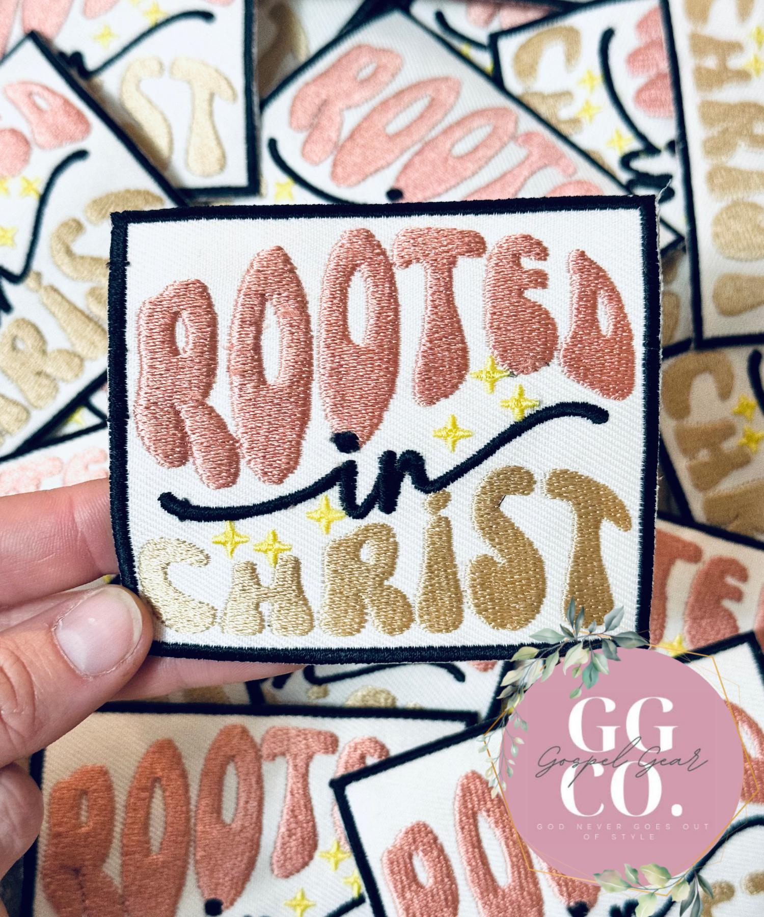 Rooted In Christ Patch, Christian Hat Patch, Embroidered Patch, Trucker Hat Patch, Iron On, Trendy Hat Patch, Jesus Patch, Patch