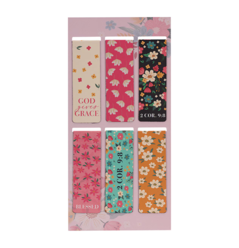 It couldn't be simpler. The Simply Blessed Magnetic Bookmark Set is the sweetest way to mark your favorite quote or page. With a selection of six feminine floral designs, inspirational sayings, and Scripture to choose from, your pages will bloom with beauty, and your page corners will stay pristine.
