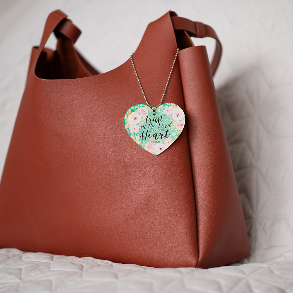 Let your faith bloom daily with this floral heart-shaped acrylic ornament, featuring the comforting Scripture “Trust in the Lord with all your heart” from Proverbs 3:5. Measuring about 3.2 inches wide and paired with a 9.5-inch silver ball chain, it’s a graceful reminder of God's guidance.